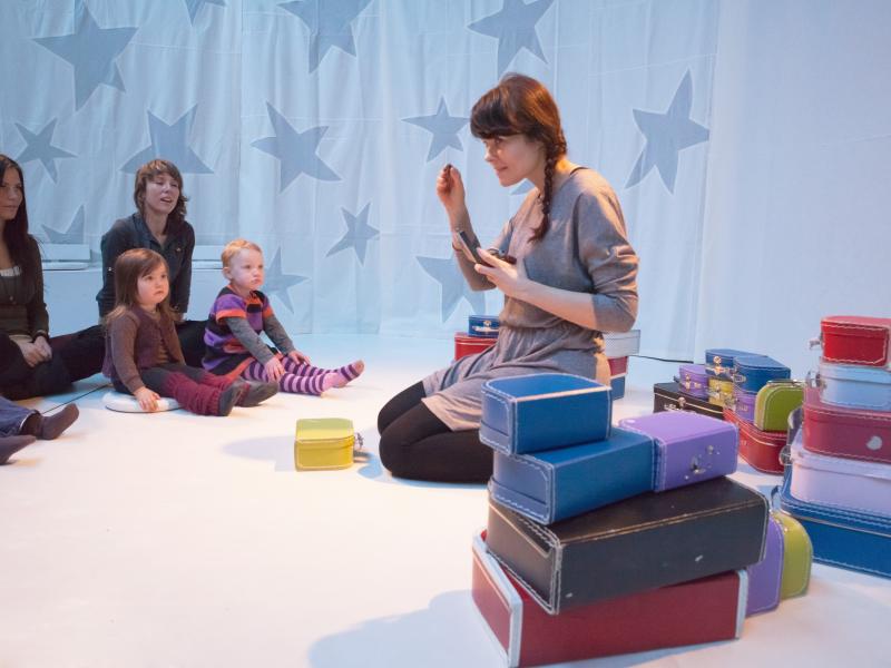 I et trygt og roligt tempo, hvor der er plads til at alle små får mulighed for at give deres besyv med, skabes en lille oase fuld af historier. Med dukketeater, små fortællinger, musik, rim og remser lukkes verden op.